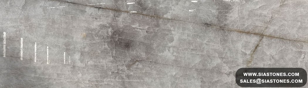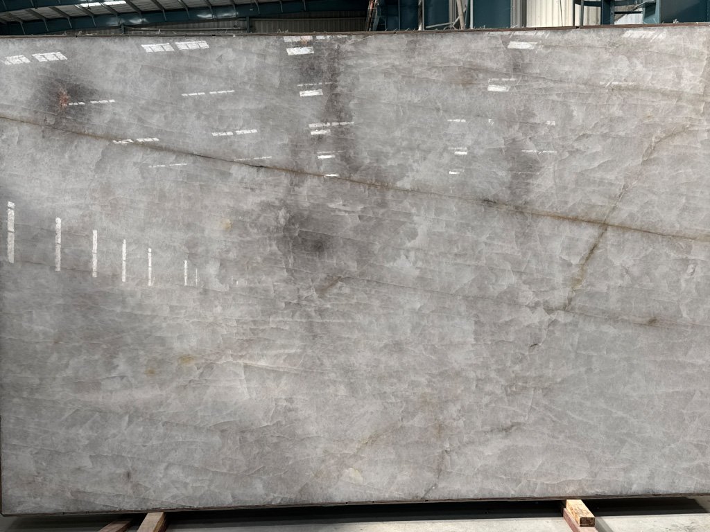Cristallo Smoky Quartzite is quarried from exclusive natural stone deposits and admired for its soft smoky grey, silver, and crystal-white patterns. The stone features a crystalline structure with subtle transparency, making it ideal for statement installations and backlit applications.