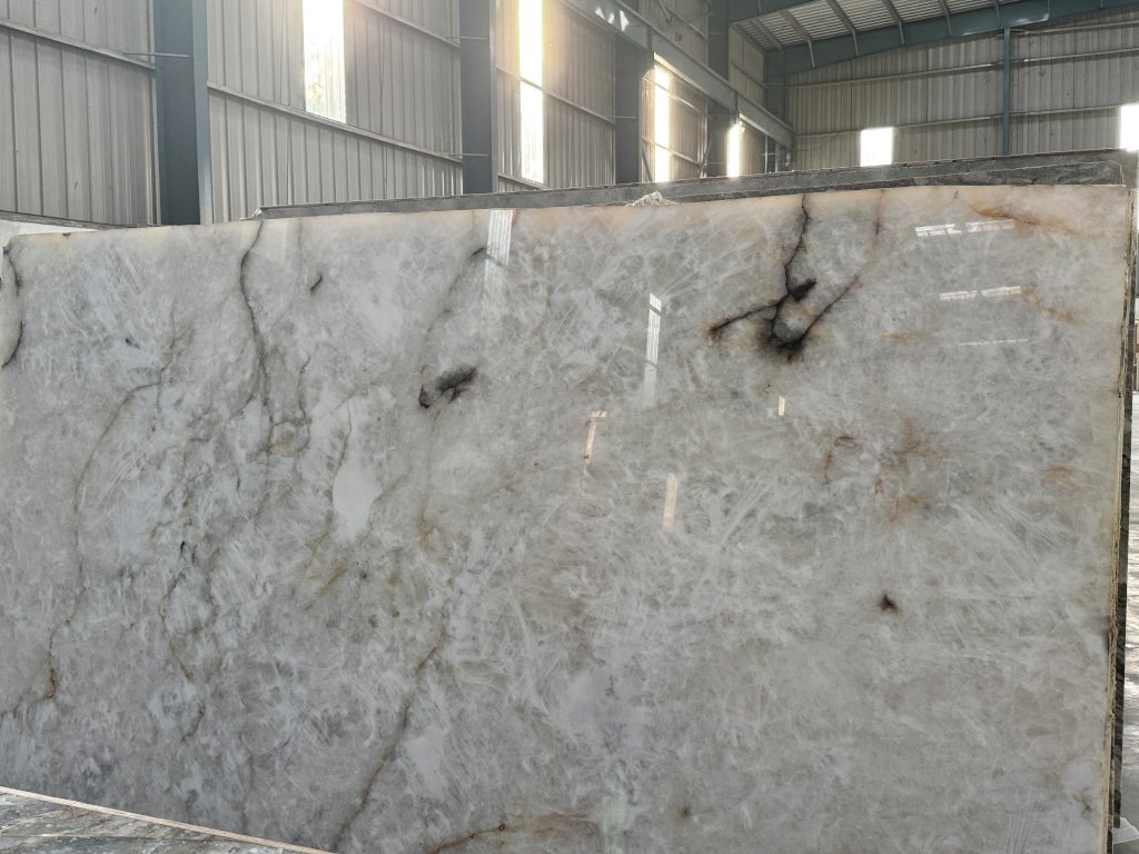 Cristallo White Quartzite is a high-end natural stone known for its crystal clarity, soft white base, and elegant translucent patterns.