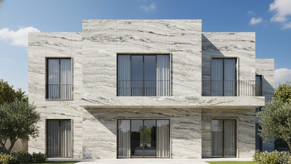 It offers the elegant look of marble with durability close to granite, making it a popular choice for both interiors and exteriors.