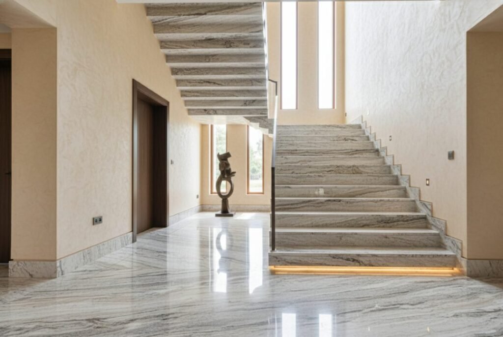 • Kitchen countertops & islands • Bathroom walls & vanity tops • Flooring & staircases • Feature walls • Commercial lobbies & hotels • Outdoor cladding (with suitable finish)