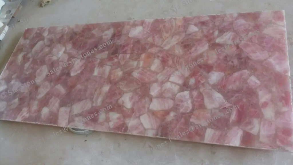 • Rose pink gemstone slab for Island countertop