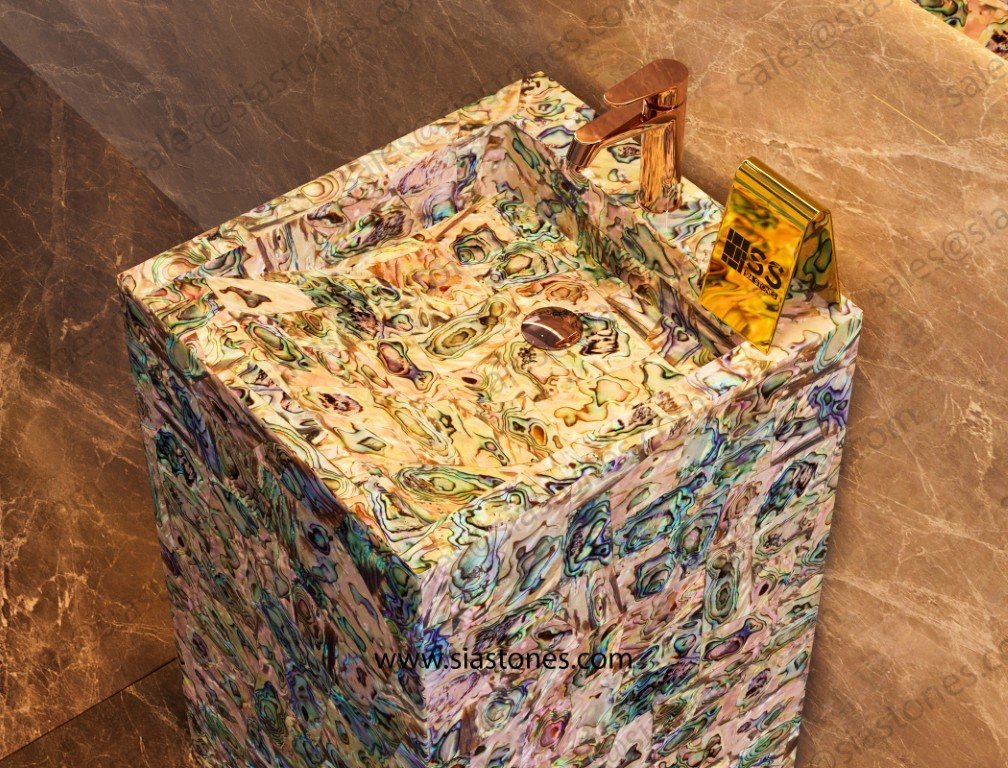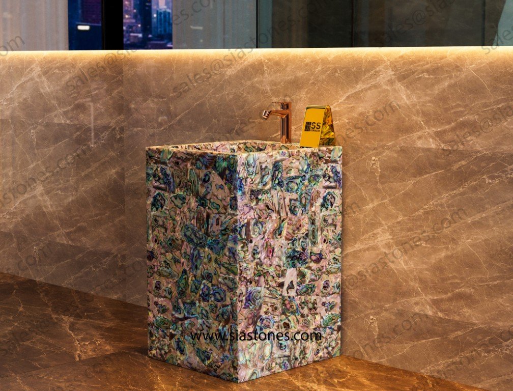 Upgrade your bathroom with the Abalone Shell Pedestal Sink – where craftsmanship, luxury, and nature meet. Order now to bring luxury into your space.