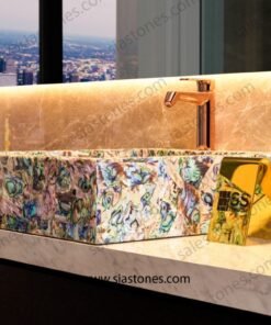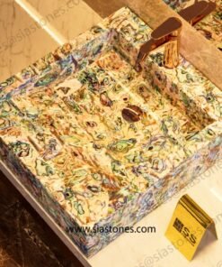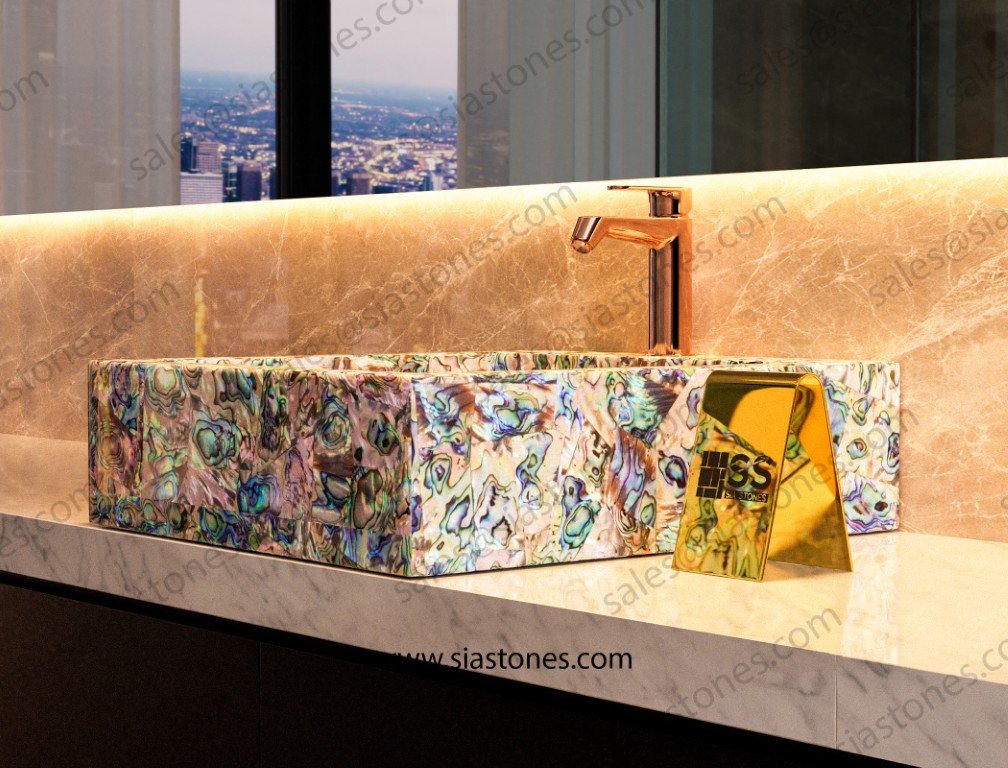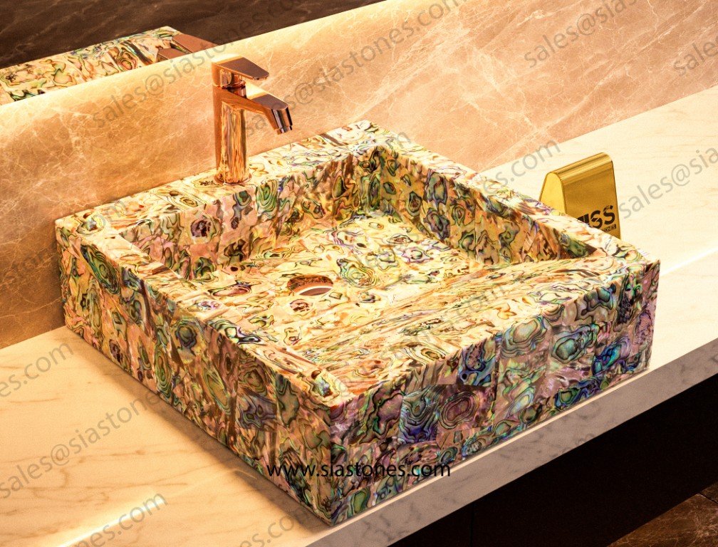 Upgrade your bathroom with the Abalone Shell Square Sloped Basin – where luxury meets functionality.