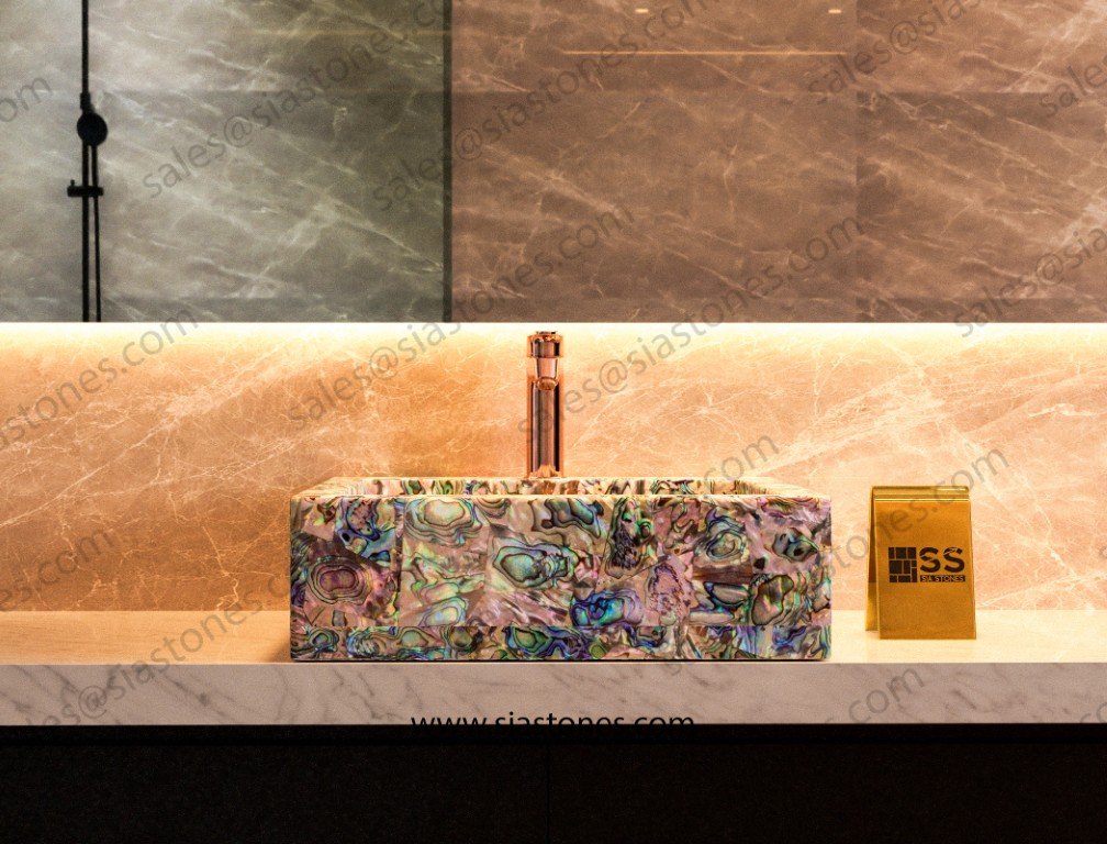 The Abalone Shell Square Sloped Basin is a luxurious, handcrafted wash basin made from authentic abalone shell. Its square shape and sloped design bring a contemporary and sophisticated touch to any bathroom. Perfect for high-end homes, hotels, or commercial spaces, this basin offers premium quality and easy maintenance.