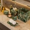 Every piece is handmade by skilled artisans and polished to highlight the natural stone’s shine. Whether you’re upgrading your luxury home or designing a five-star hotel bathroom, this set brings high-end charm to your space.