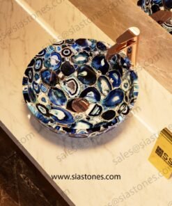 At Sia Stones, we create sinks from real semi-precious stones with a focus on beauty, strength, and exclusivity. The Blue Agate Round Wash Basin is for those who want a truly one-of-a-kind piece with timeless style – delivered globally to your doorstep.