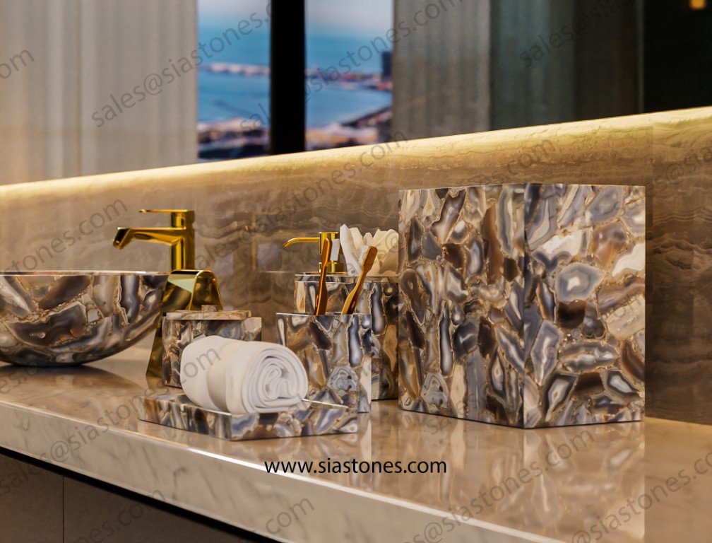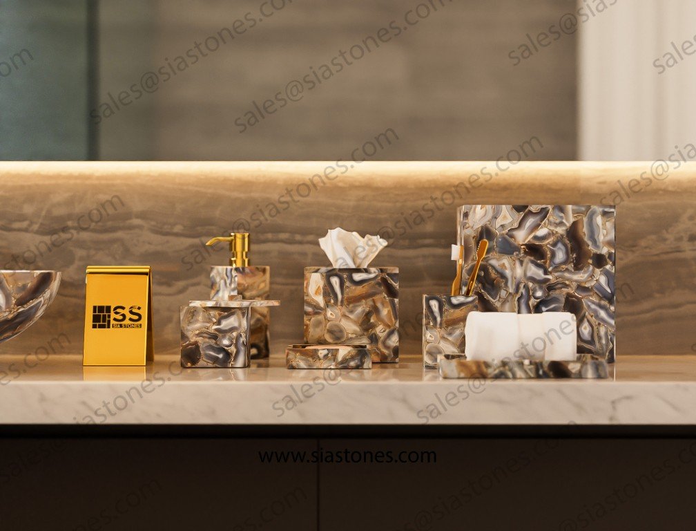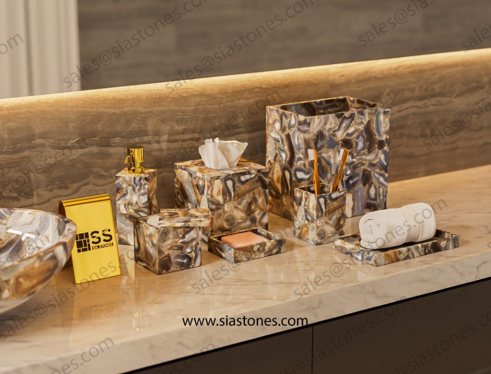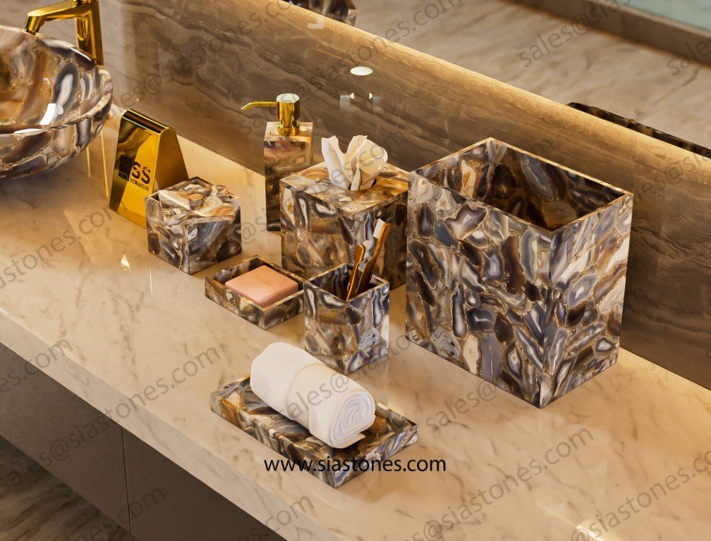 This 7-piece set is not only beautiful but also strong and useful. It is ideal for luxury homes, villas, spa-style bathrooms, boutique hotels, and interior designers looking for a natural luxury touch.