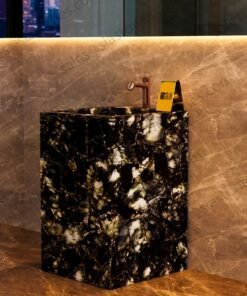 The Labradorite Gemstone Pedestal Sink is perfect for luxury bathrooms, exclusive homes, premium resorts, and high-end hotels. Its unique iridescent color and bold design make it a perfect choice for those looking to create a standout, luxurious bathroom.