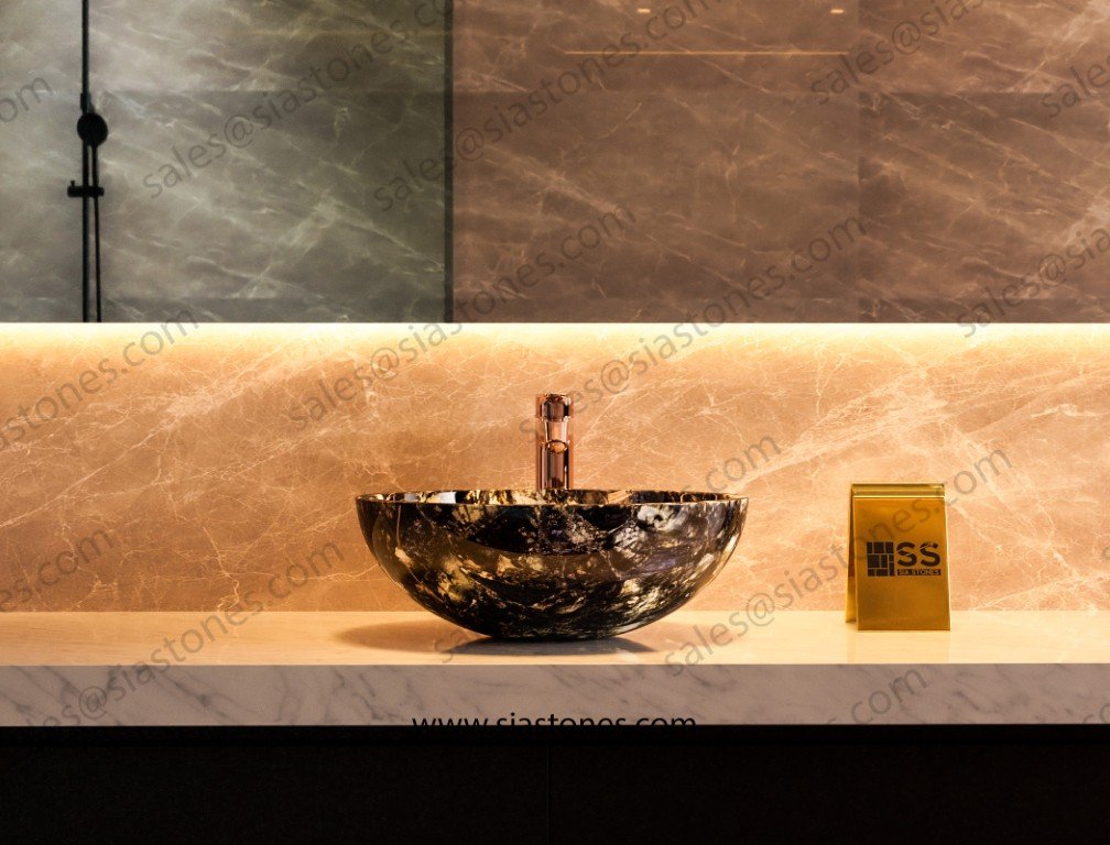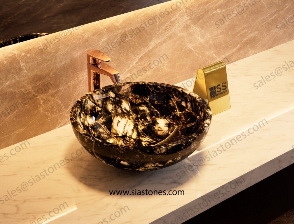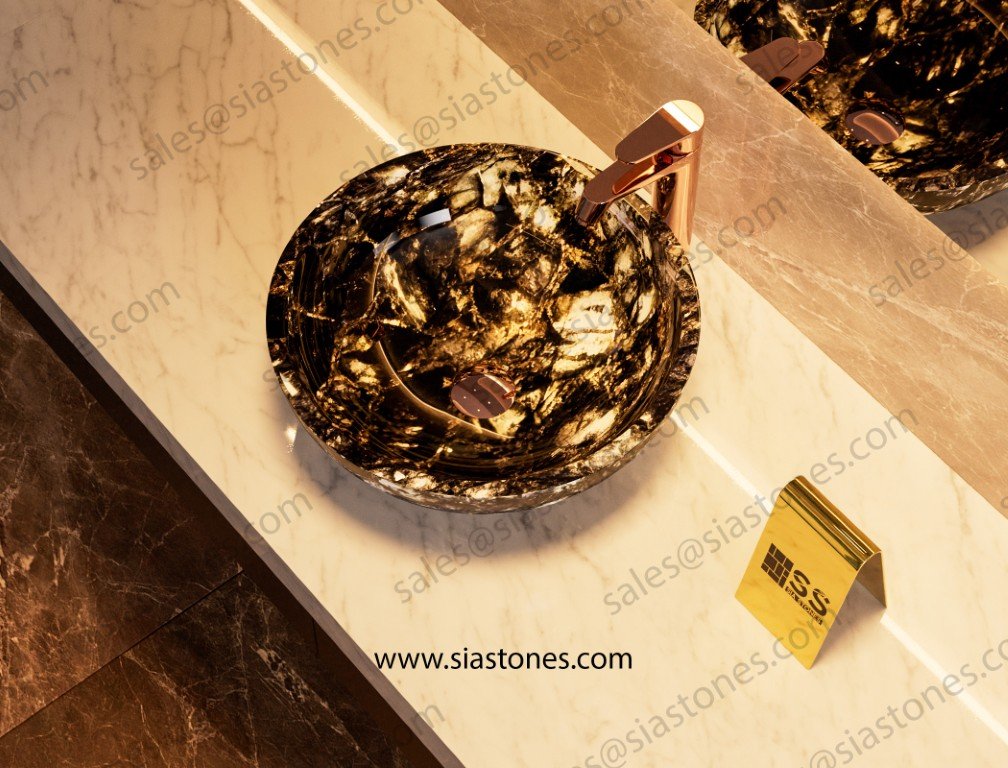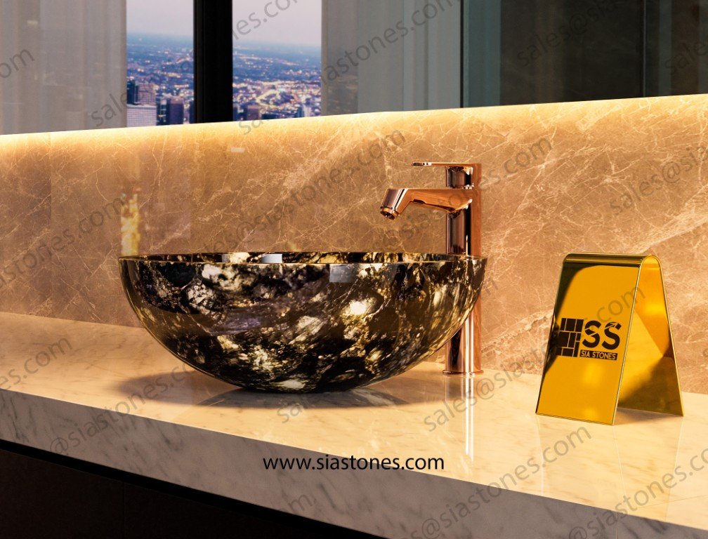 At Sia Stones, we offer handcrafted gemstone basins made from premium materials. The Labradorite Gemstone Round Wash Basin brings natural light, elegance, and luxury into your space — shipped globally to your doorstep.
