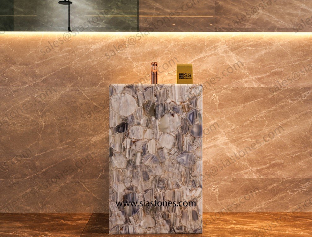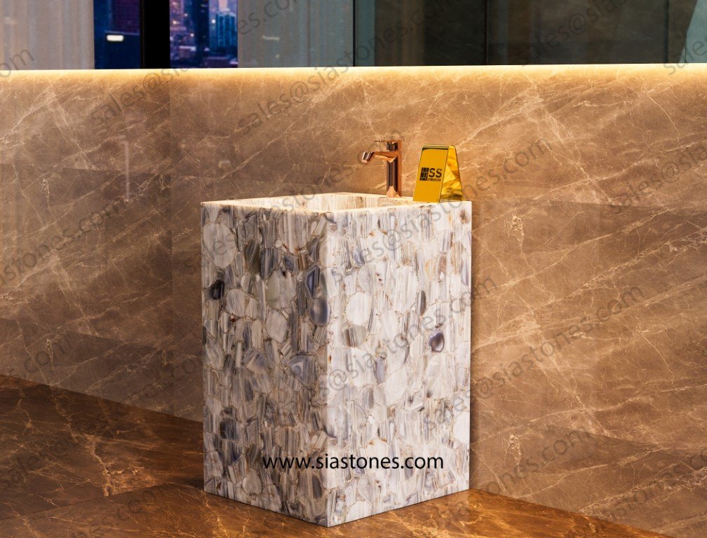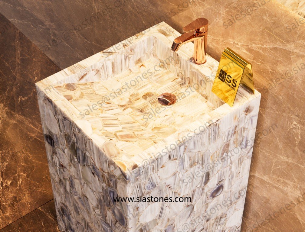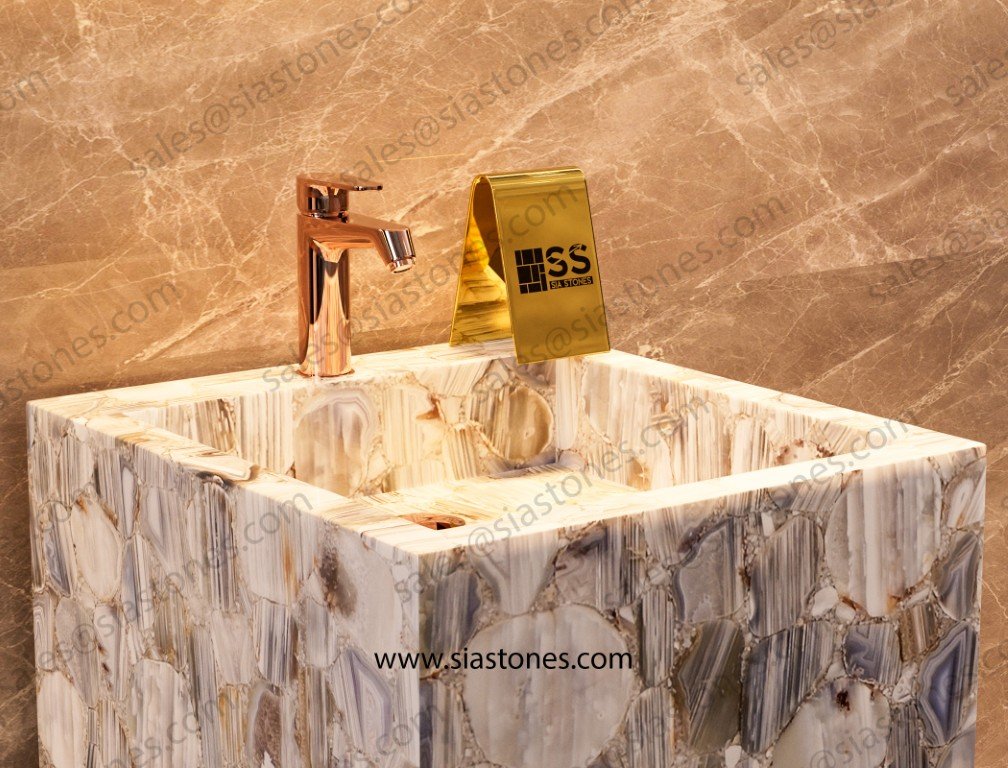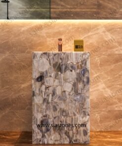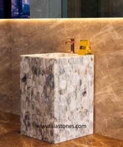 Enhance your bathroom with the Lace Agate Pedestal Sink, where elegance, luxury, and nature’s beauty come together. Order now to create a stunning and royal space.