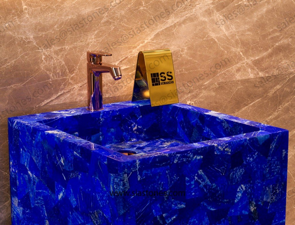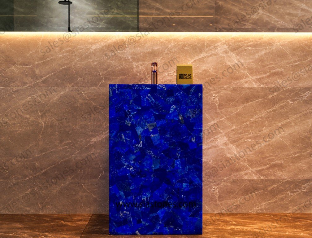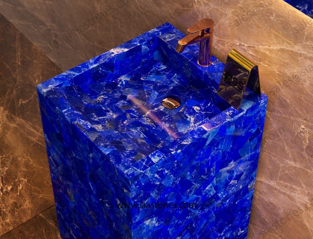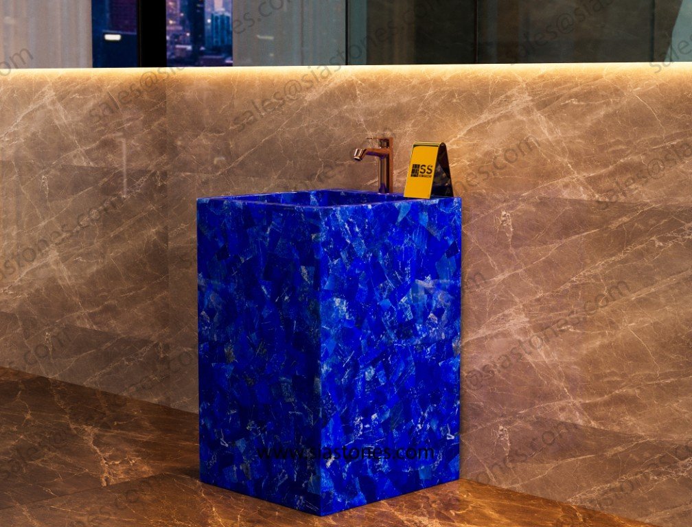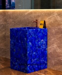Upgrade your bathroom with the Lapis Lazuli Gemstone Pedestal Sink, where timeless beauty meets luxury. Order now to bring elegance of luxury royal blue stone to your space.