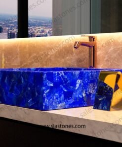 Each basin is handcrafted by skilled artisans, ensuring premium quality and exceptional craftsmanship. The durable structure of lapis lazuli ensures longevity, while its easy-to-clean surface makes it a convenient addition to any high-end bathroom, hotel, or commercial space.