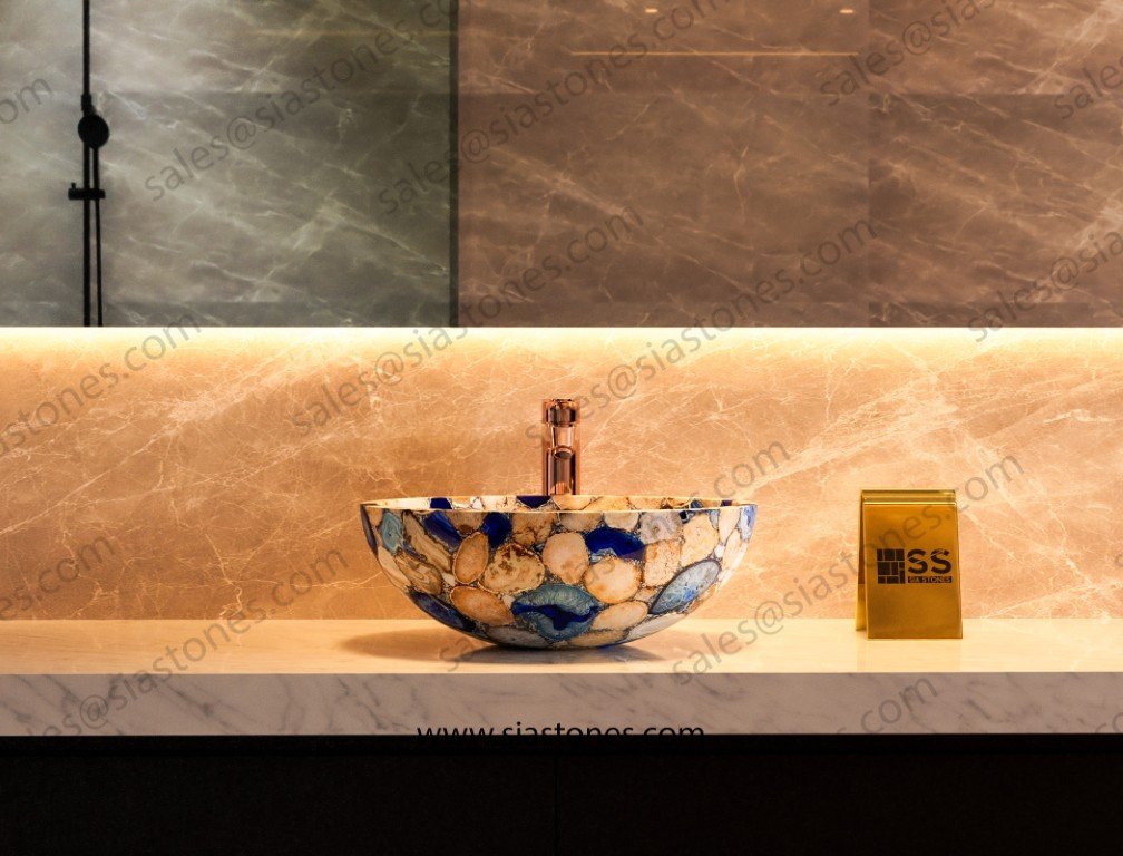 At Sia Stones, we specialize in turning beautiful stones into luxurious, handcrafted basins. The Mix Agate Round Wash Basin is the perfect choice for those who appreciate exceptional design, natural beauty, and high-quality craftsmanship — delivered globally to your door.