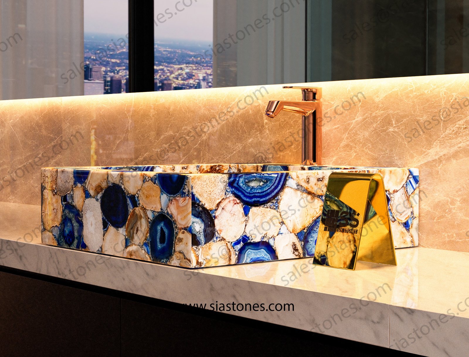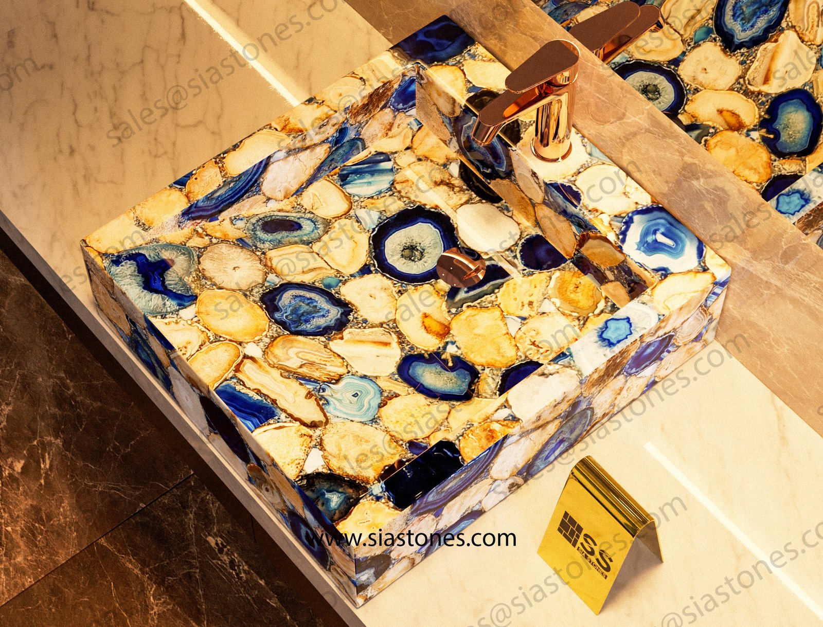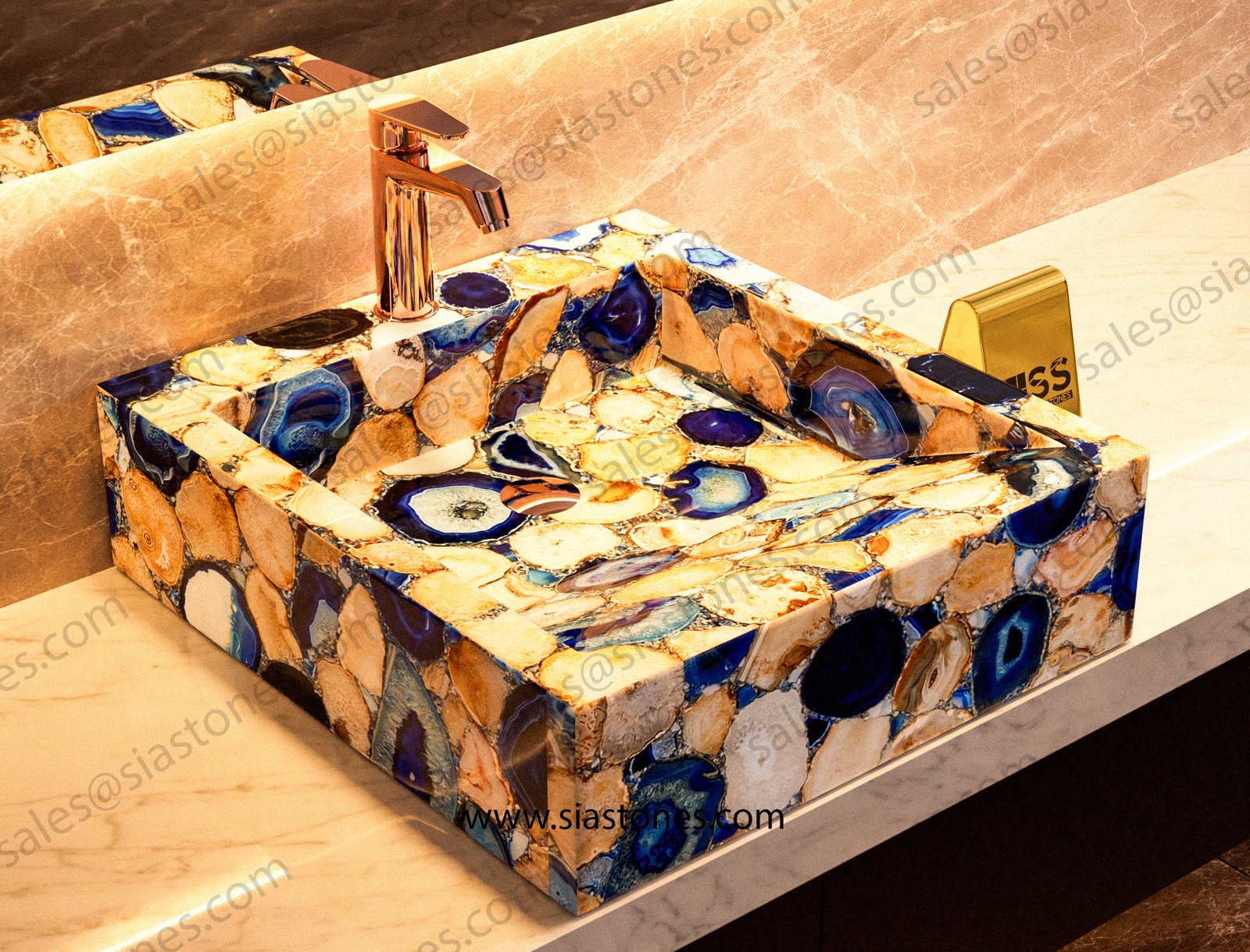 Enhance your bathroom with the Mix Agate Square Sloped Wash Basin. Its vibrant colors, premium craftsmanship, and timeless beauty make it the perfect choice for those seeking an elegant and durable bathroom feature.