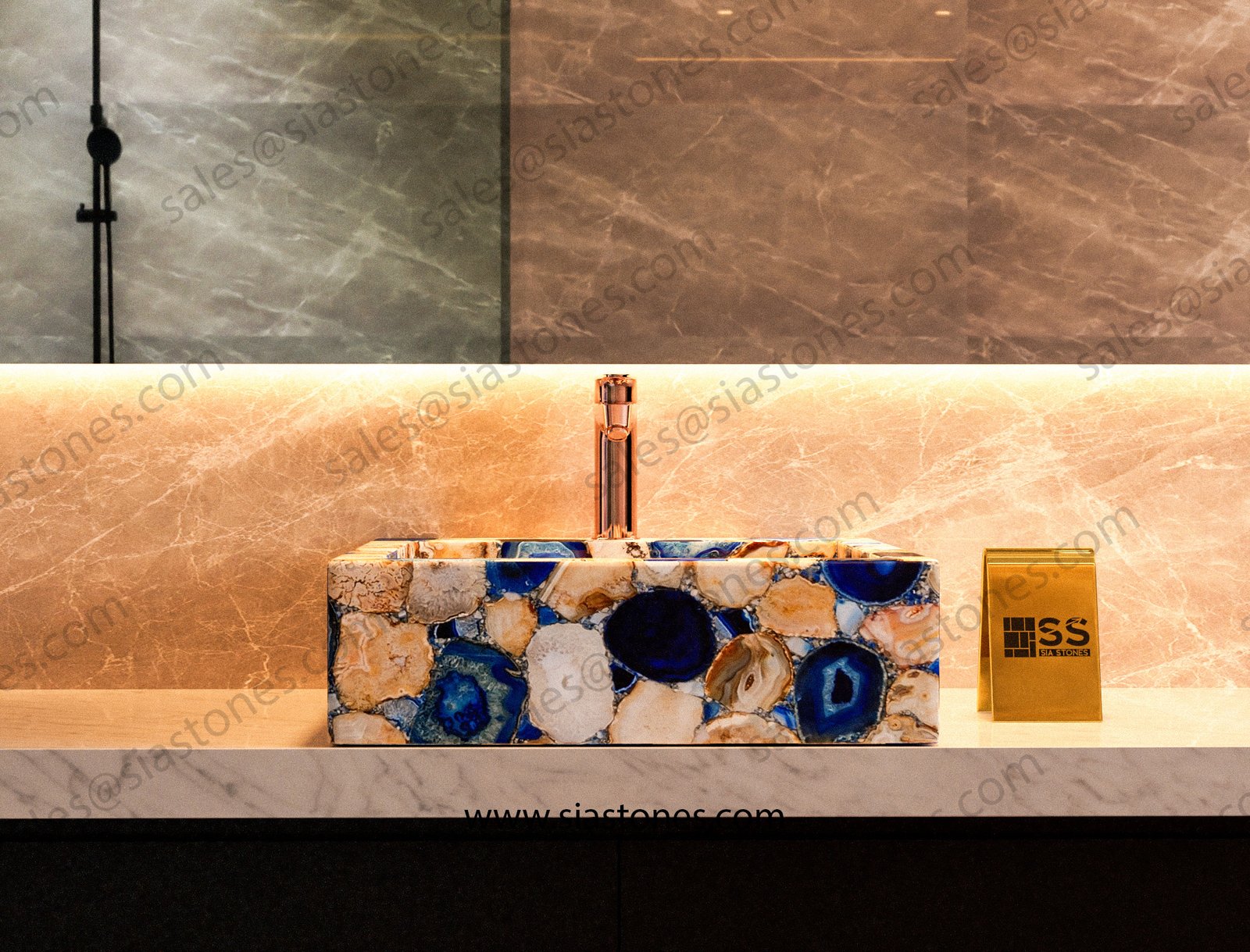 The Mix Agate Square Sloped Wash Basin is a stunning blend of natural beauty and modern design. Made from authentic mix agate, this basin showcases a unique combination of vibrant colors and intricate patterns that create an eye-catching focal point in any bathroom. The square shape and sloped design provide a perfect balance of style and comfort, making it a perfect addition to high-end bathrooms, hotels, or commercial spaces.