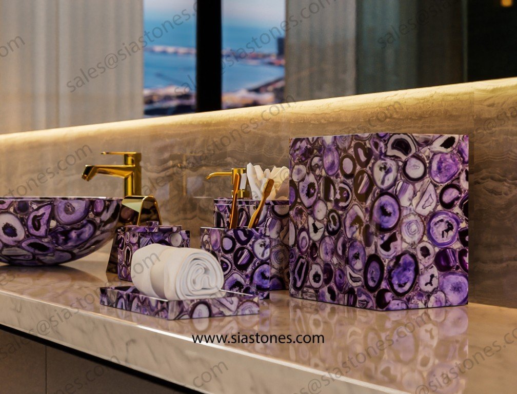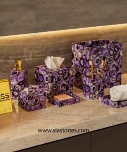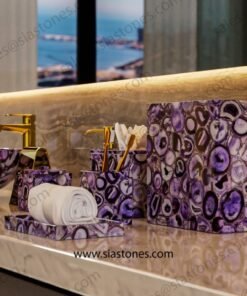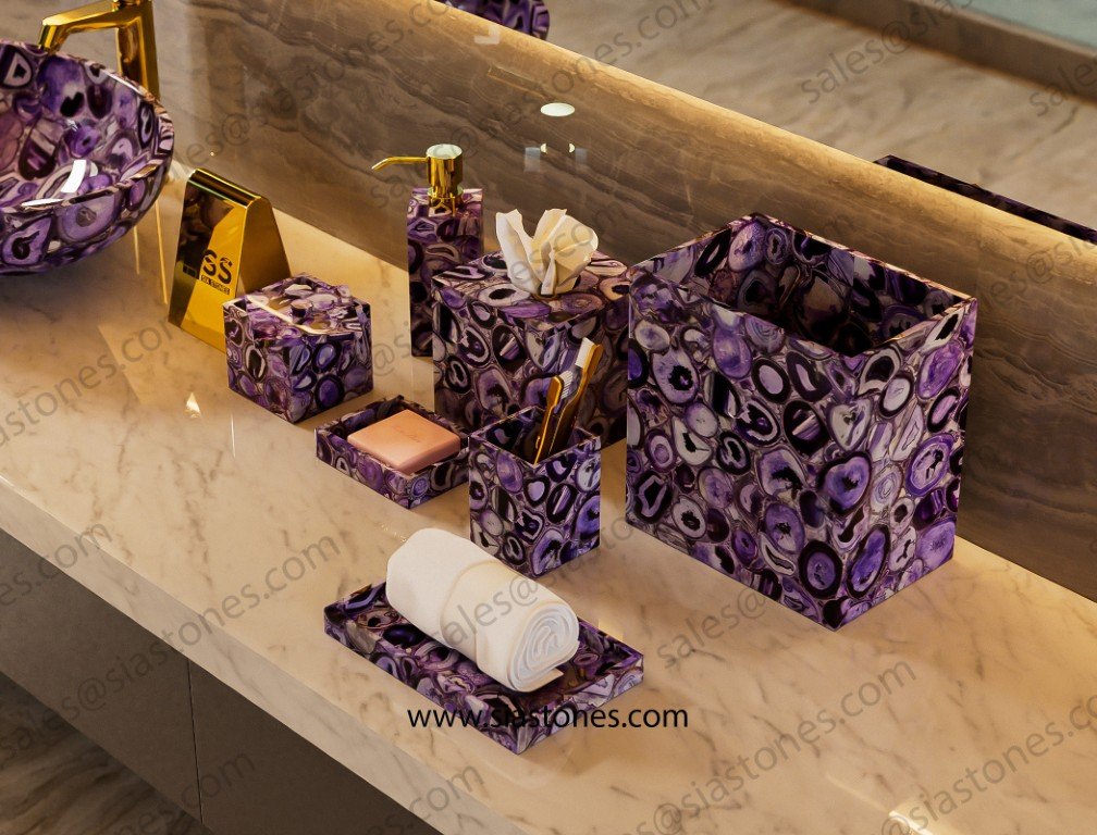 Bring luxury and bold beauty into your bathroom with the Purple Agate Bath Accessories Set. Made from authentic purple agate gemstone, this 7-piece set adds a deep, royal look to modern and classic interiors.