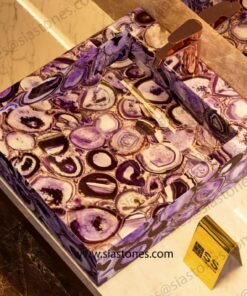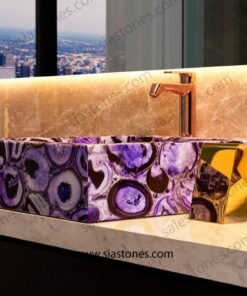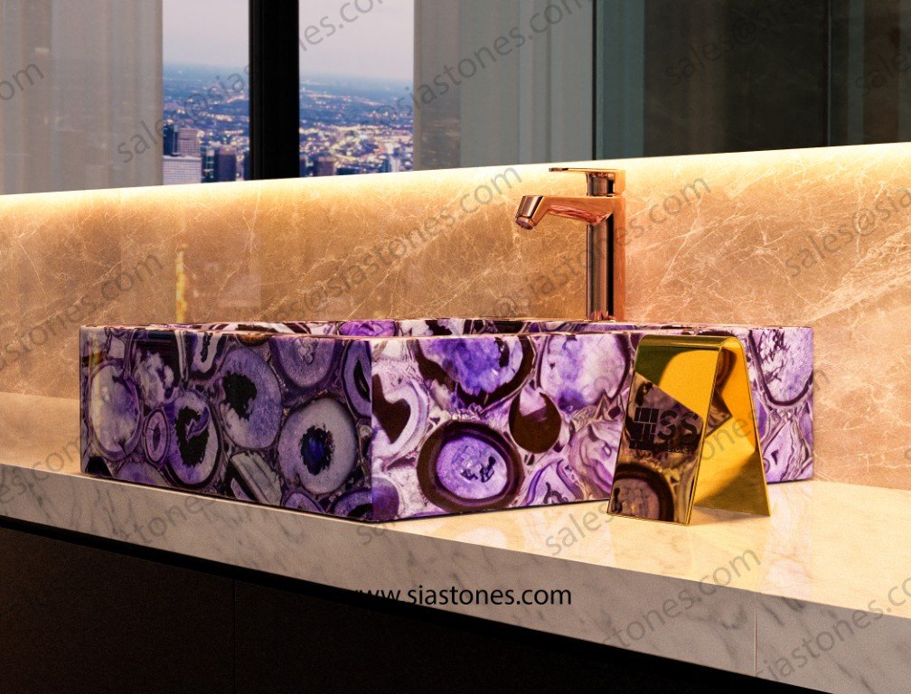 Elevate your bathroom with the Purple Agate Square Sloped Wash Basin. Its rich purple tones, premium craftsmanship, and durability make it an exceptional choice for those seeking a unique and luxurious bathroom feature.