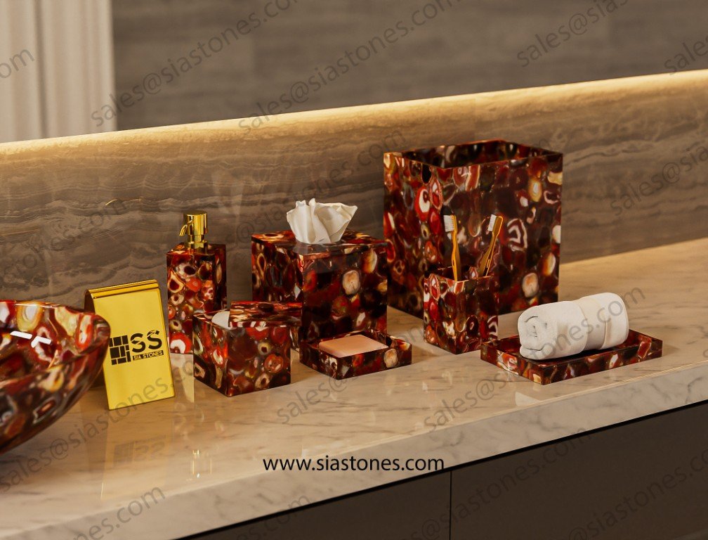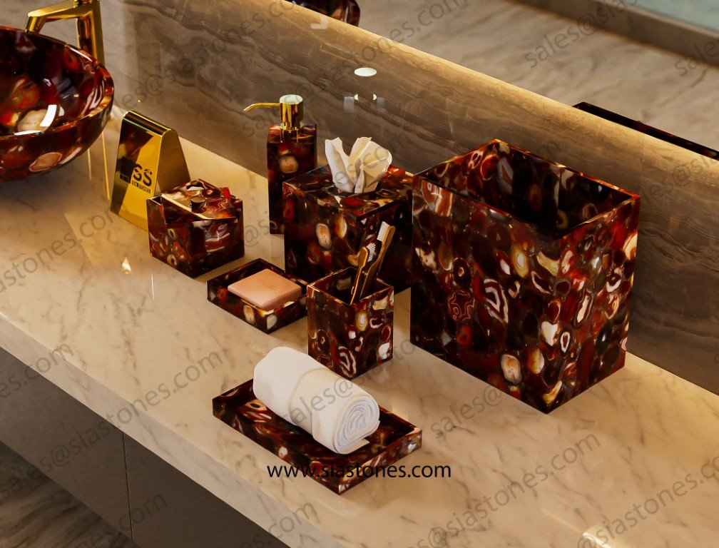 The Red Agate Bath Accessories Set is a true symbol of bold beauty and luxury. It’s more than just a bathroom set — it’s a style statement for those who love powerful color and elegance.