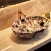 Expertly handcrafted and crystal-cut, this gemstone basin shines with natural beauty. The smooth glossy finish highlights the fine details and colors of each stone slice, making every piece one-of-a-kind.
