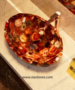 The Red Agate Crystal Cut Luxury Basin is a luxury wash basin made from authentic red agate gemstone. It features deep red, maroon, and warm earthy patterns that bring energy, elegance, and bold character to any bathroom space.