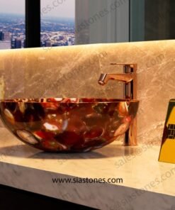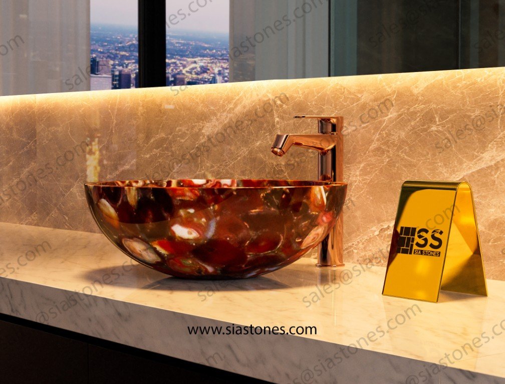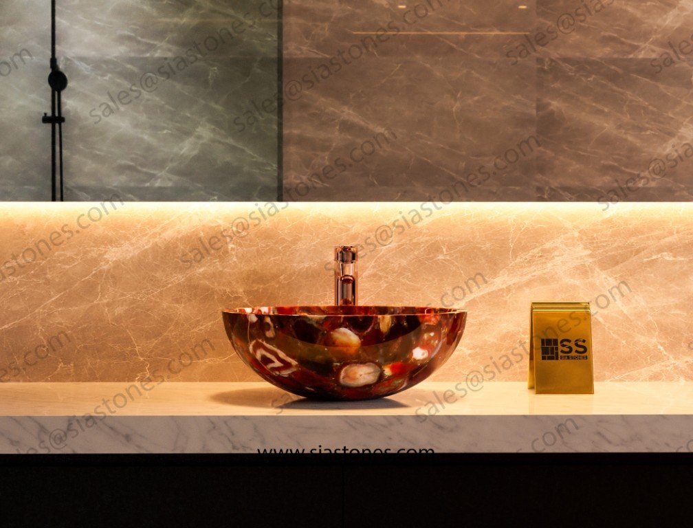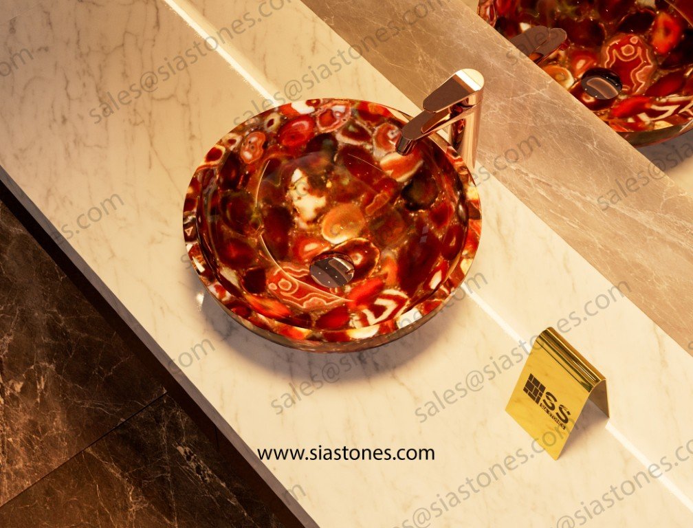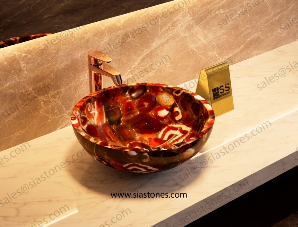 At Sia Stones, we specialize in creating luxurious, handcrafted wash basins from natural stones. The Red Agate Round Wash Basin is the perfect choice for those seeking vibrant color, unique design, and exceptional craftsmanship — delivered globally to your doorstep.