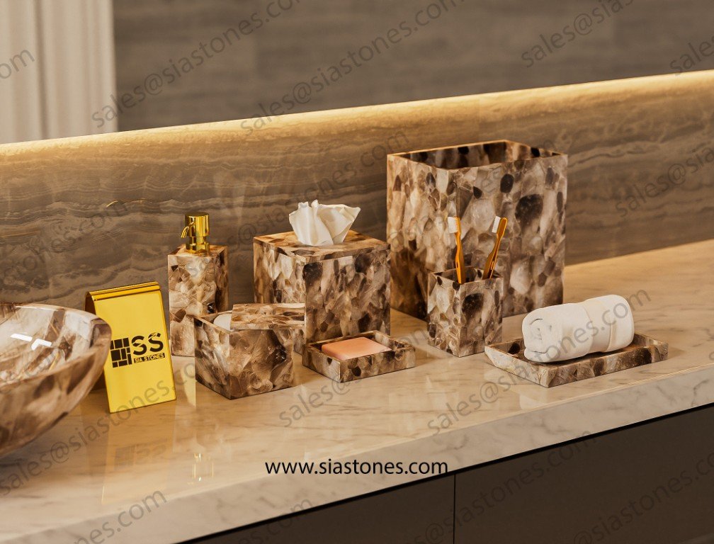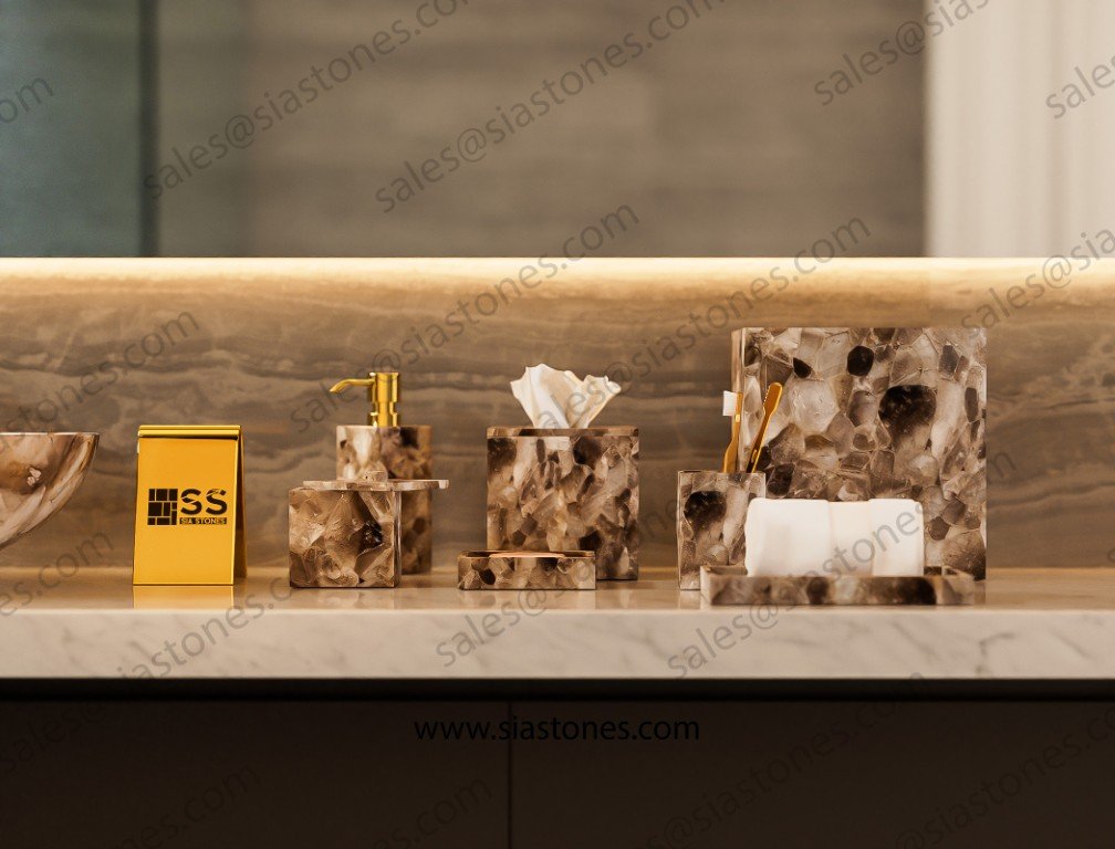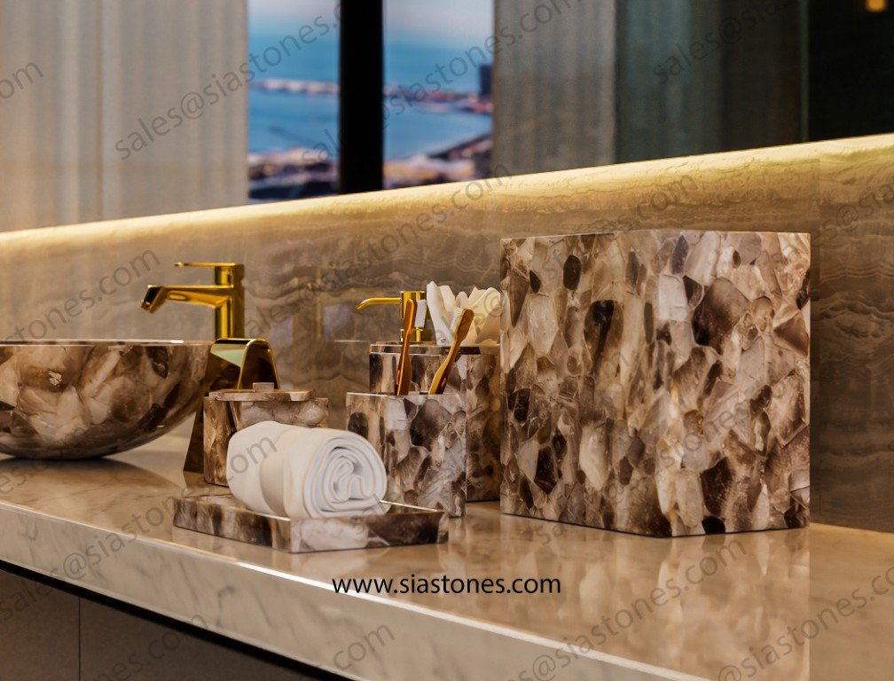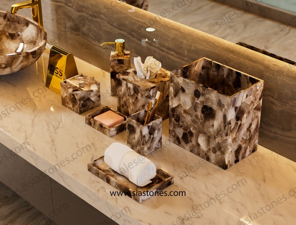 Ideal for luxury homes, spa-style bathrooms, resorts, and premium hotels, this set is perfect for those who appreciate elegant and modern gemstone décor.
