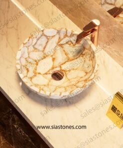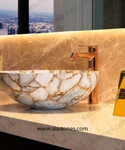 At Sia Stones, we specialize in turning exceptional stones into luxurious, handcrafted wash basins. The White Agate Gold Fill Round Wash Basin is the perfect choice for those seeking elegance, luxury, and exceptional craftsmanship — delivered globally to your doorstep.