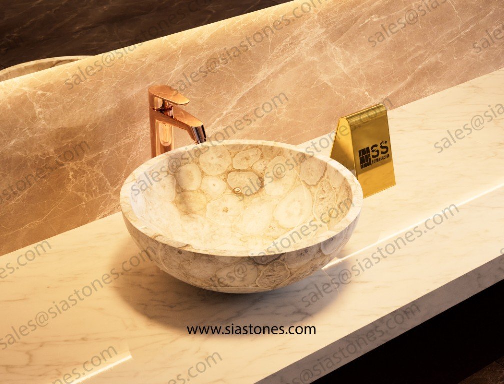At Sia Stones, we specialize in turning exceptional stones into luxurious, handcrafted wash basins. The White Agate Round Wash Basin is the perfect choice for those seeking purity, elegance, and exceptional craftsmanship — delivered globally to your doorstep.