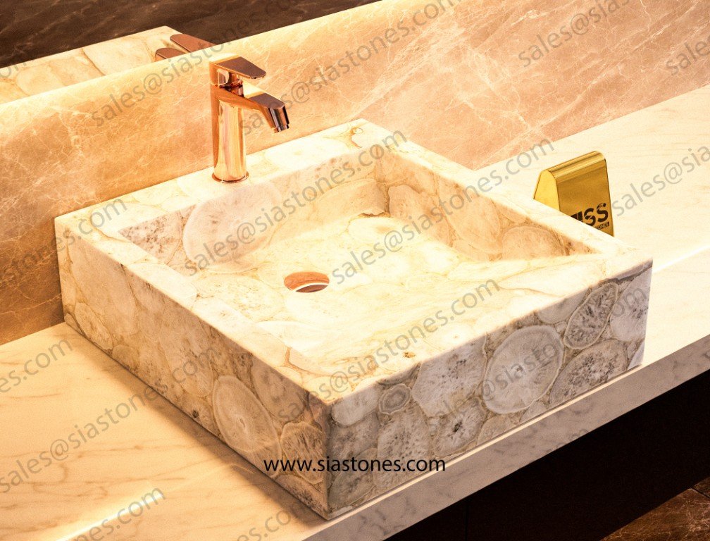 With its pure white tones, premium craftsmanship, and durability, the White Agate Square Sloped Wash Basin is an excellent choice for those seeking a unique and luxurious bathroom feature.